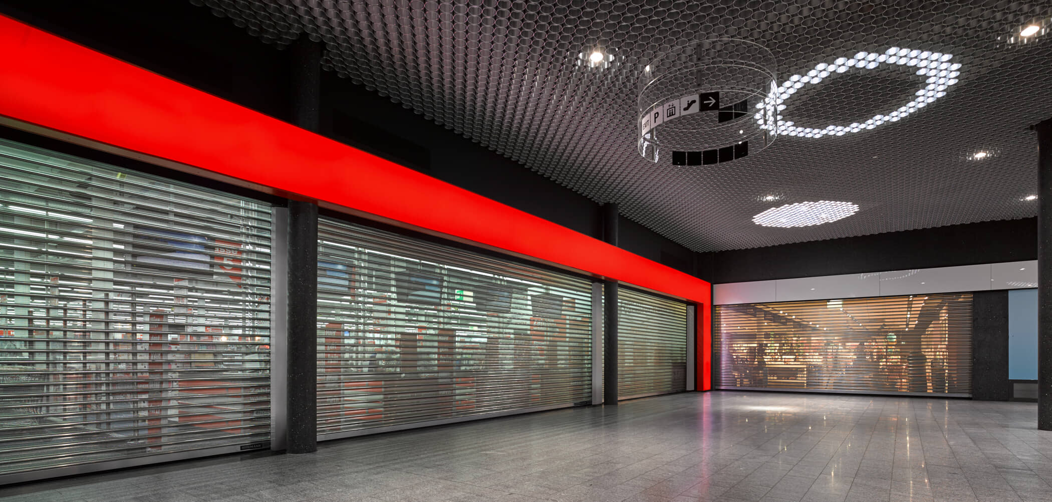 Ролетните решетки често се използват за заключване и защита от неоторизиран достъп на магазини и заведения за хранене в рамките на търговски центрове, стадиони или летища. В търговските центрове, стадионите или летищата ролетните решетки често се използват като заключване на магазини и защитават магазините и заведенията за обществено хранене от неоторизиран достъп. Използвани като завършващ профил на вратата, ролетните решетки управляват влизането в и излизането от подземни и общи гаражи и осигуряват естествена вентилация.